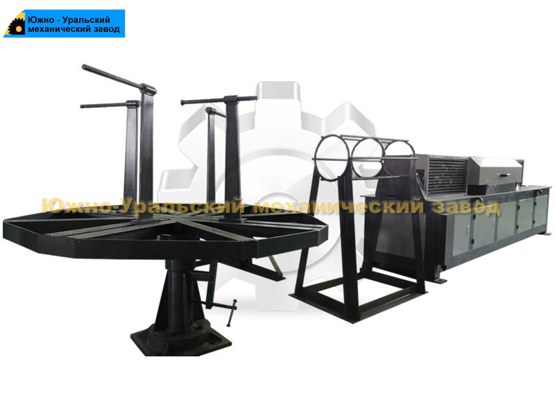 Автомат правильно-рубильный оснащен бухторазматывателем, необходимым для подачи проволоки, ограждением для безопасности оператора и приемным устройством.
